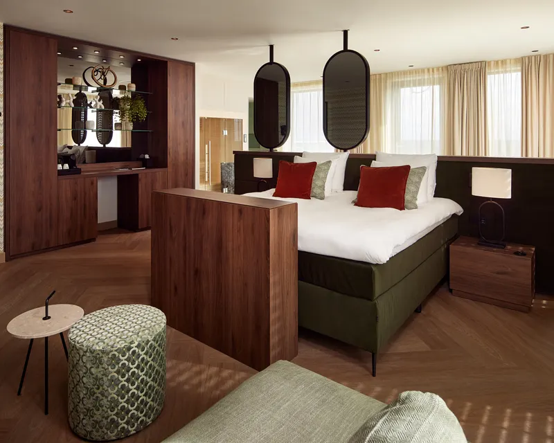 Das Nonplusultra an Entspannung und Genuss ist unsere Wellness-Suite, die mit Whirlpool, finnischer Sauna und Regendusche ausgestattet ist. Diese Suite verfügt außerdem über ein Kingsize-Bett, einen Balkon, eine Minibar, einen Bademantel und Hausschuhe sowie einen Smart-TV mit Chromecast. Während Ihres Aufenthalts haben Sie freien Zugang zu Wellness, Fitness und Schwimmbad.