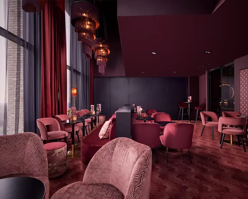 Located on the 16th floor of our hotel you will find the sky bar, where you can enjoy a delicious drink while overlooking the breathtaking view of Lelystad. The bar offers an exclusive experience and provides a 360-degree panoramic view of the entire region. It is a great location for your next party or get-together. The sky bar is luxuriously designed and has a modern feel, adding to the entertaining evening you will experience with your wine, cocktail or soft drink.
