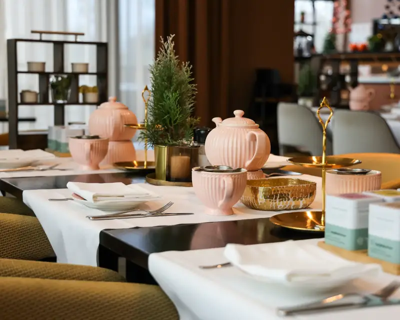 Een middag vol zoete en hartige lekkernijen, van versgebakken scones tot heerlijke sandwiches. De keuze is reuze aan ons buffet. Neem uw etagere mee naar het buffet en stel uw eigen Christmas High Tea samen. Uiteraard geserveerd met een ruime keuze aan thee.