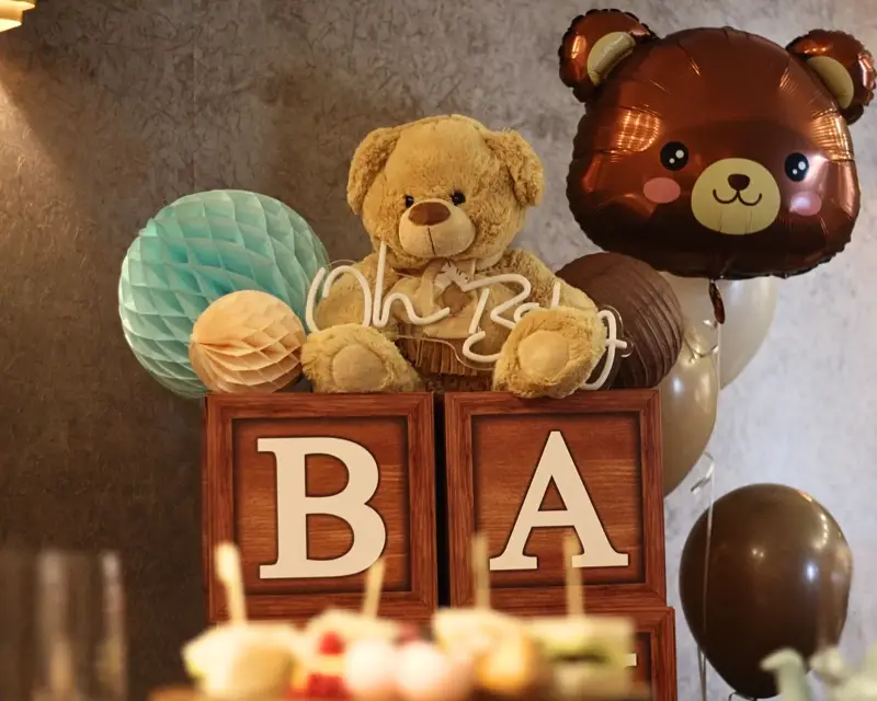 Maak de babyshower nog specialer met onze decoratieservice. Voor slechts €5,00 per persoon decoreren wij de zaal met luxe slingers, servetten, baby box/ letters, welkomstbord en tafeldecoratie. Voeg een glas bubbels toe voor €6,50 per persoon en maak het feest compleet. Geef dit aan bij uw reservering. Onze decoraties zorgen voor een feestelijke sfeer die perfect past bij de viering van een nieuwe aanstaande moeder.